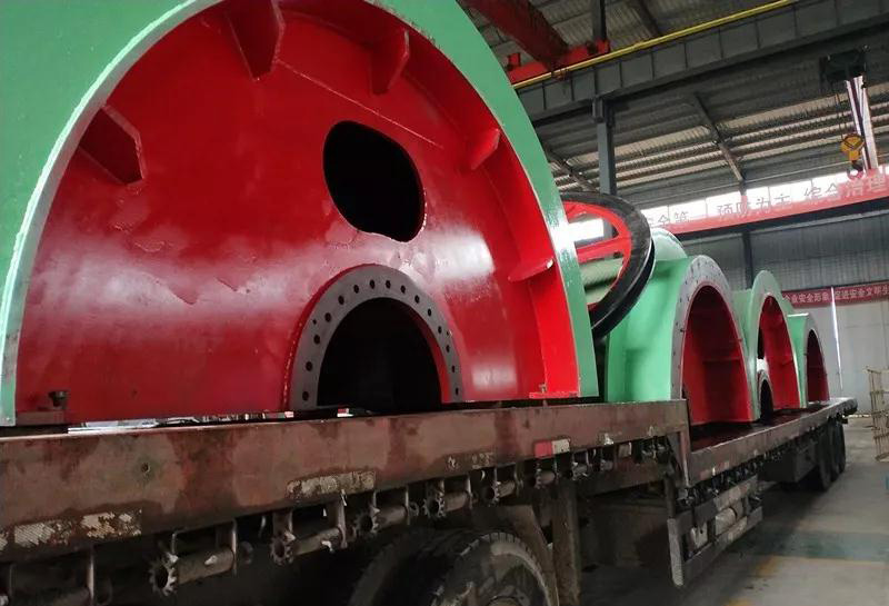 提升機的卷筒選用高強度低合金鋼Q345A為筒殼材料?,F(xiàn)在我們看到的是JK3.0×2.2P剖分式的卷筒。